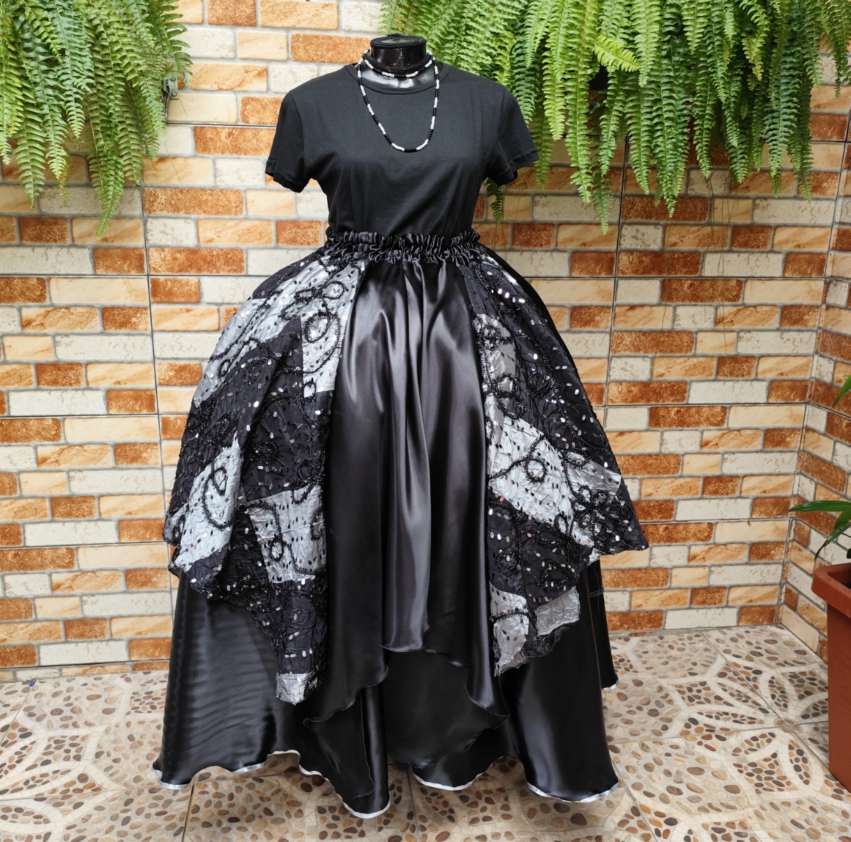 Saia lenços preta e prata