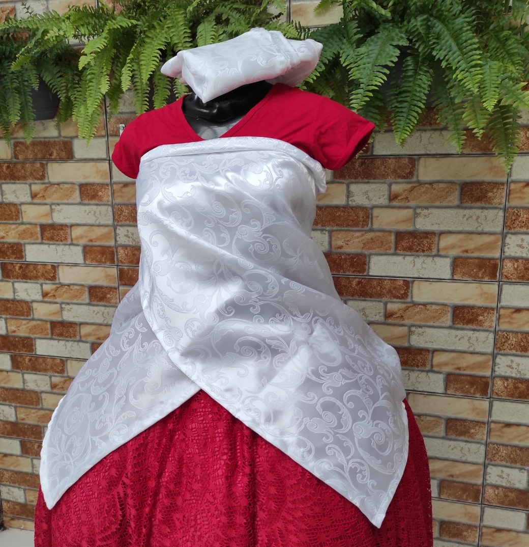 Conjunto de Pano de cabeça+ pano da costa branco cetim