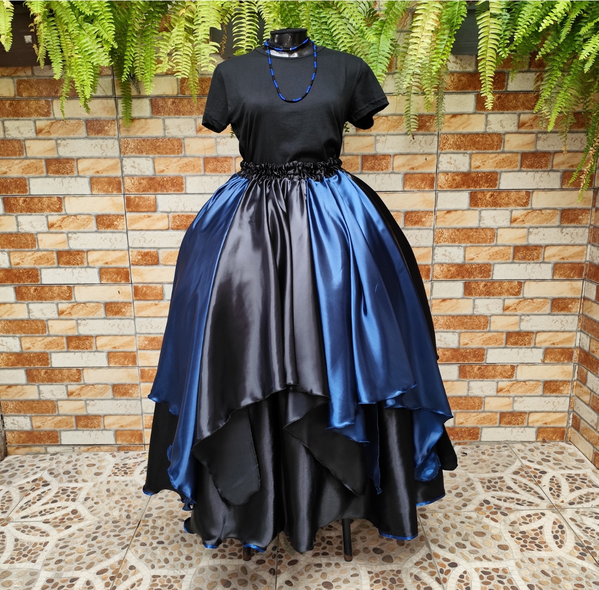 Saia Lenços preta e azul marinho em cetim - forro preto