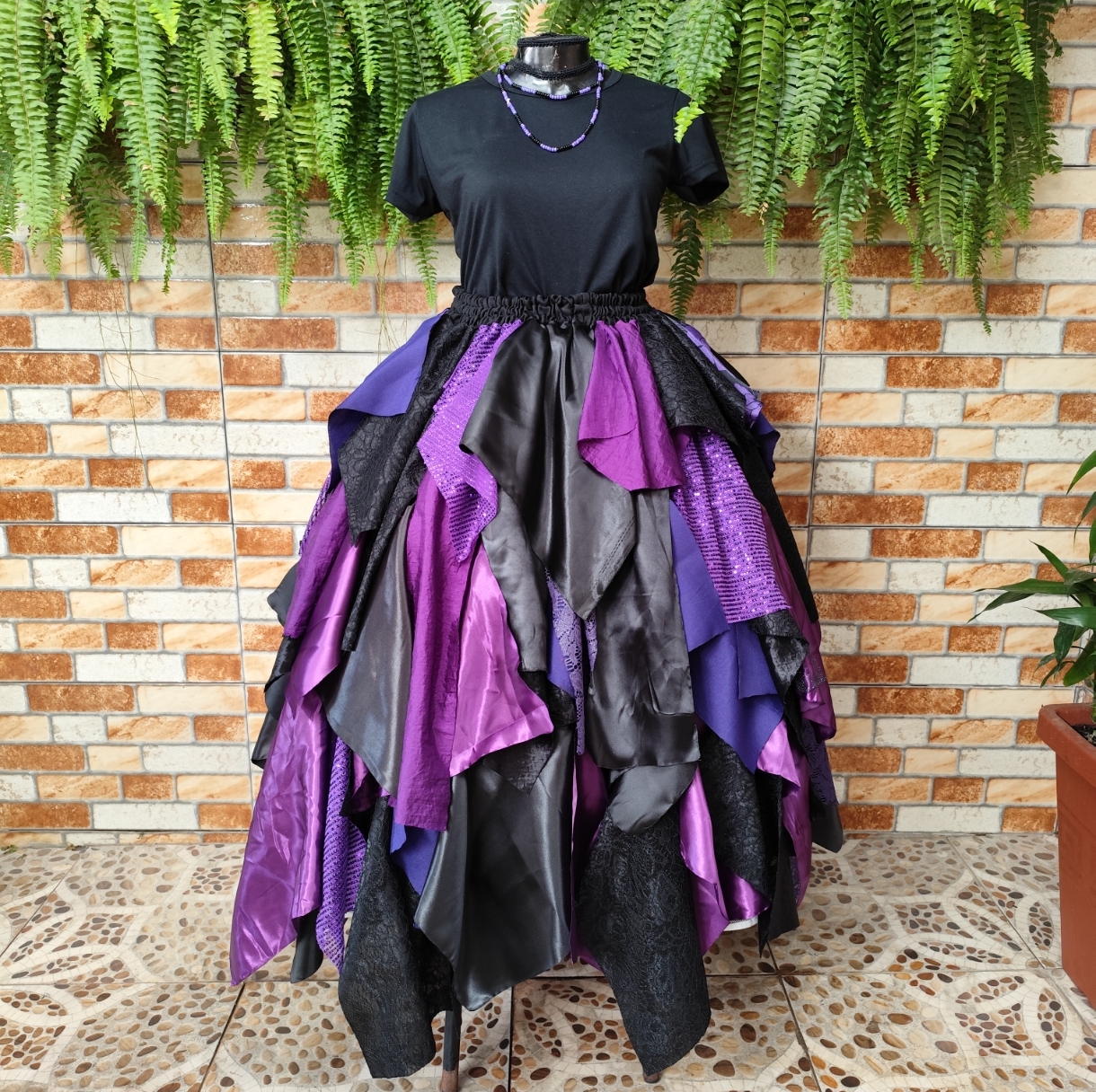 Saia em retalhos preto e roxo - Forro em Oxford preto