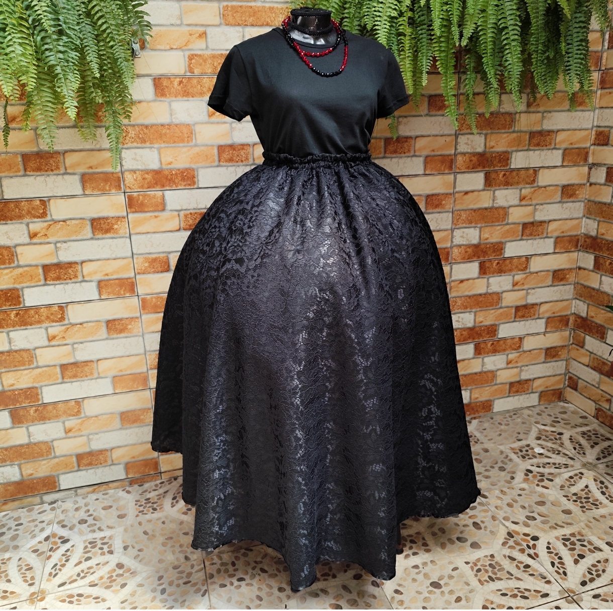 Saia de renda forrada preta