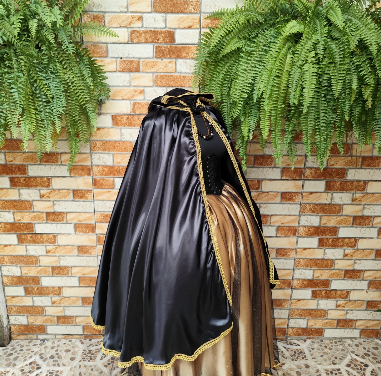 Capa de cetim preto com detalhes dourado